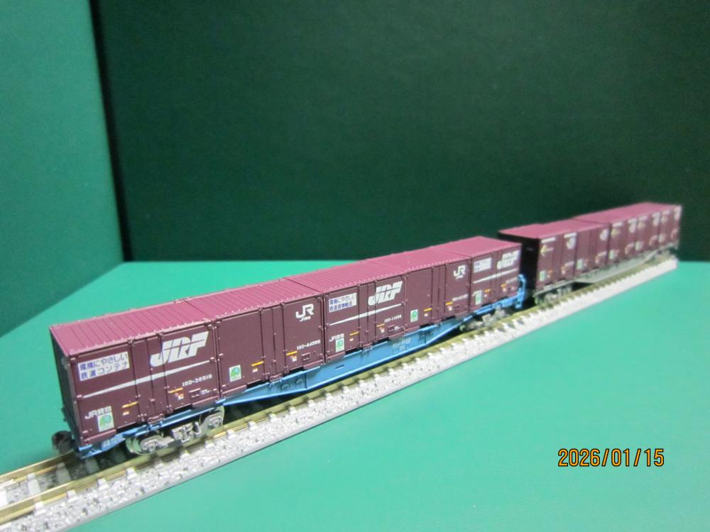 客車、電車が好きだったのに!室内灯を組み込んで夜間の走行シーンを見ながら、まったりする事もあったのに。とある電気機関車の販売が決まり、予約。それにあわせて、このコンテナのセットを事前に購入。ふむふむ、細部までよくできている。数か月間放置。機関車来た。走らせる。おぉー、かっちょいい!!ほかの機関車も似合うんじゃね?国鉄時代の機関車、最高。JRの機関車、これも良し。貨物牽引の機関車の方が多くなっちゃった。沼にはまるとは、こういう事か。戻る