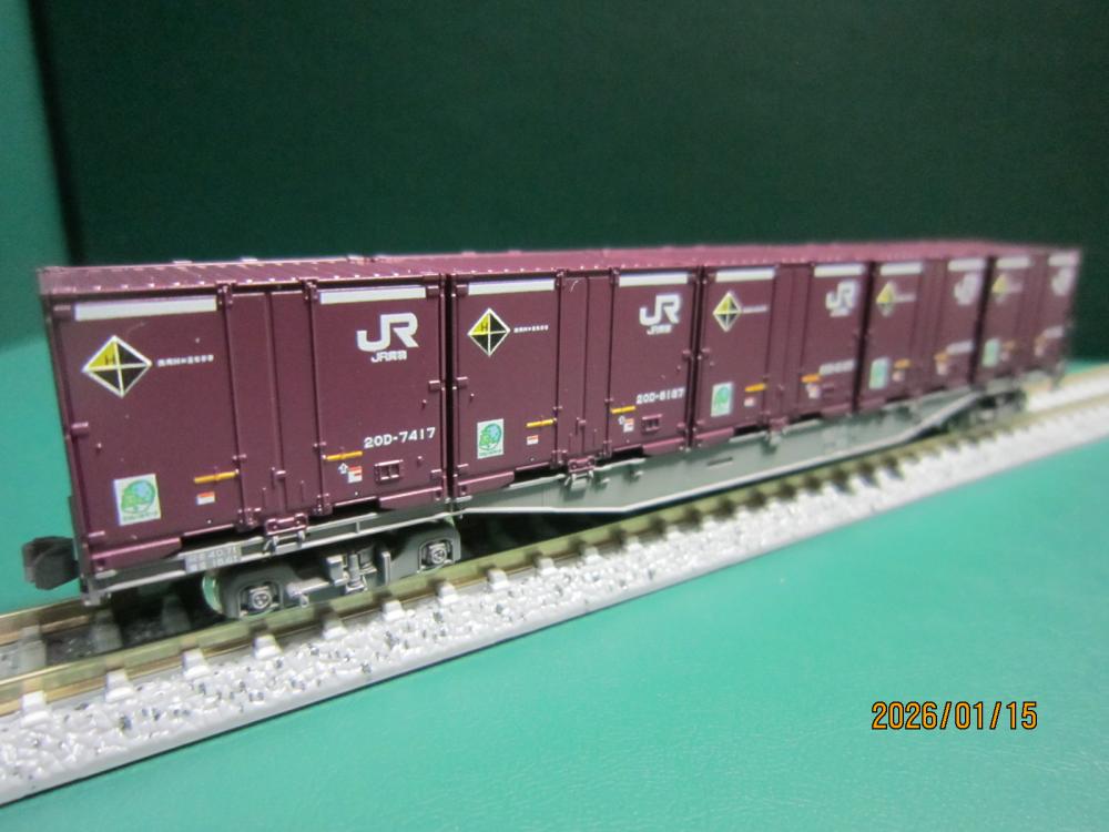 初めて買ったカトーのコキに積載するために購入した。それに合わせて他のカトーのコンテナも購入した。コキにコンテナを積載すると???なぜかコンテナがグラつく。きちんと積載されない。だまされたと思ってト○○○スのコンテナを購入。積載。えっ!しっかりと固定される。う?ん、カトーのコンテナいっぱい買ったのに…。