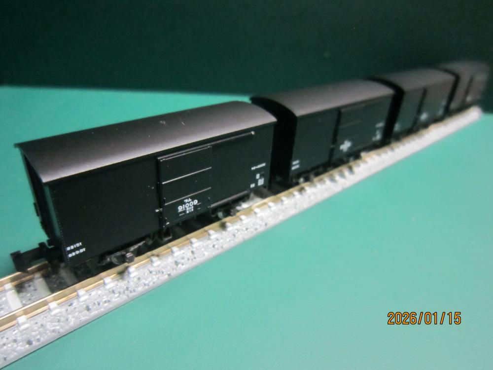 カトーさんのD51購入に際して、2軸貨車を牽引させたいと思い、数セット購入しました。走行させると、小気味よい2軸貨車のジョイント音で、昔の貨物列車を知っている中老には、懐かしく思えます。貨車の作りの良さは勿論の事、荷重15t,自重9.1t、(換算量数)積2,空1,型式ワム90000と印刷を読む事ができ、精巧さに驚きました。