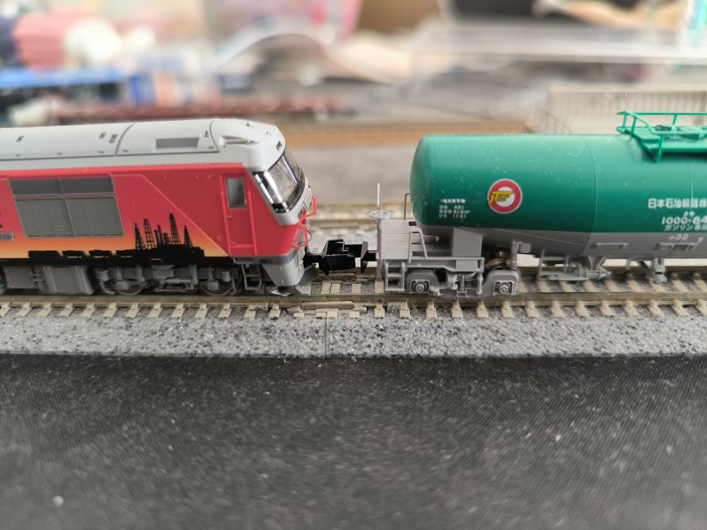もともと、エネオスマーク無しの [テールライト付)を1両、同じくエネオスマーク無しの貨車を3両、米タン使用を3両、合計7両を持っていますが、物足りなく感じて、新たに、米タン使用を1両増やして、合計8両編成にしてみました!