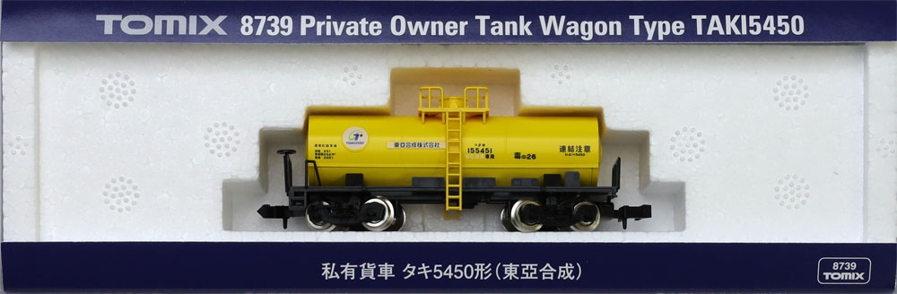 | ■備考 | 動力なし 東亞合成株式会社所有車を再現 ロゴや「東亞合成株式会社」標記は印刷済み 「(航送用)」標記が消された姿を再現 車番は印刷済「タキ155451」 常備駅は「昭和町」を印刷済み ミニカーブ対応 |